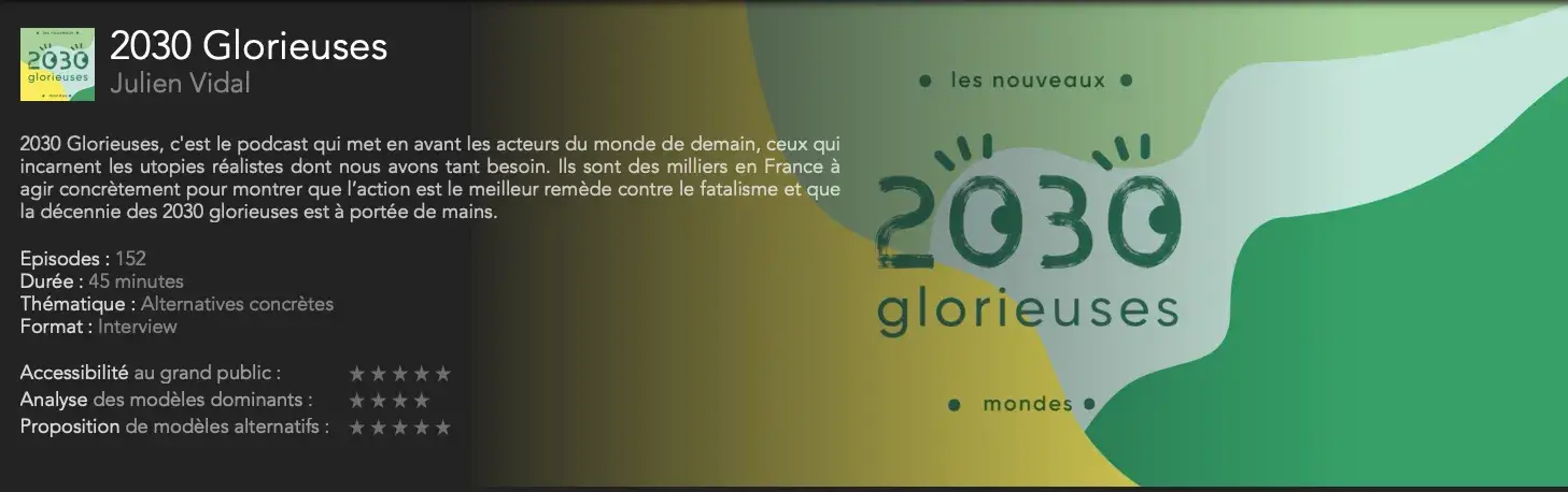 Venez donc découvrir les 2030 Glorieuses, cette époque fabuleuse dans laquelle nous avons su révéler les signaux faibles, et faire émerger une société plus égalitaire, plus durable et plus heureuse afin de faire face aux enjeux de notre siècle.