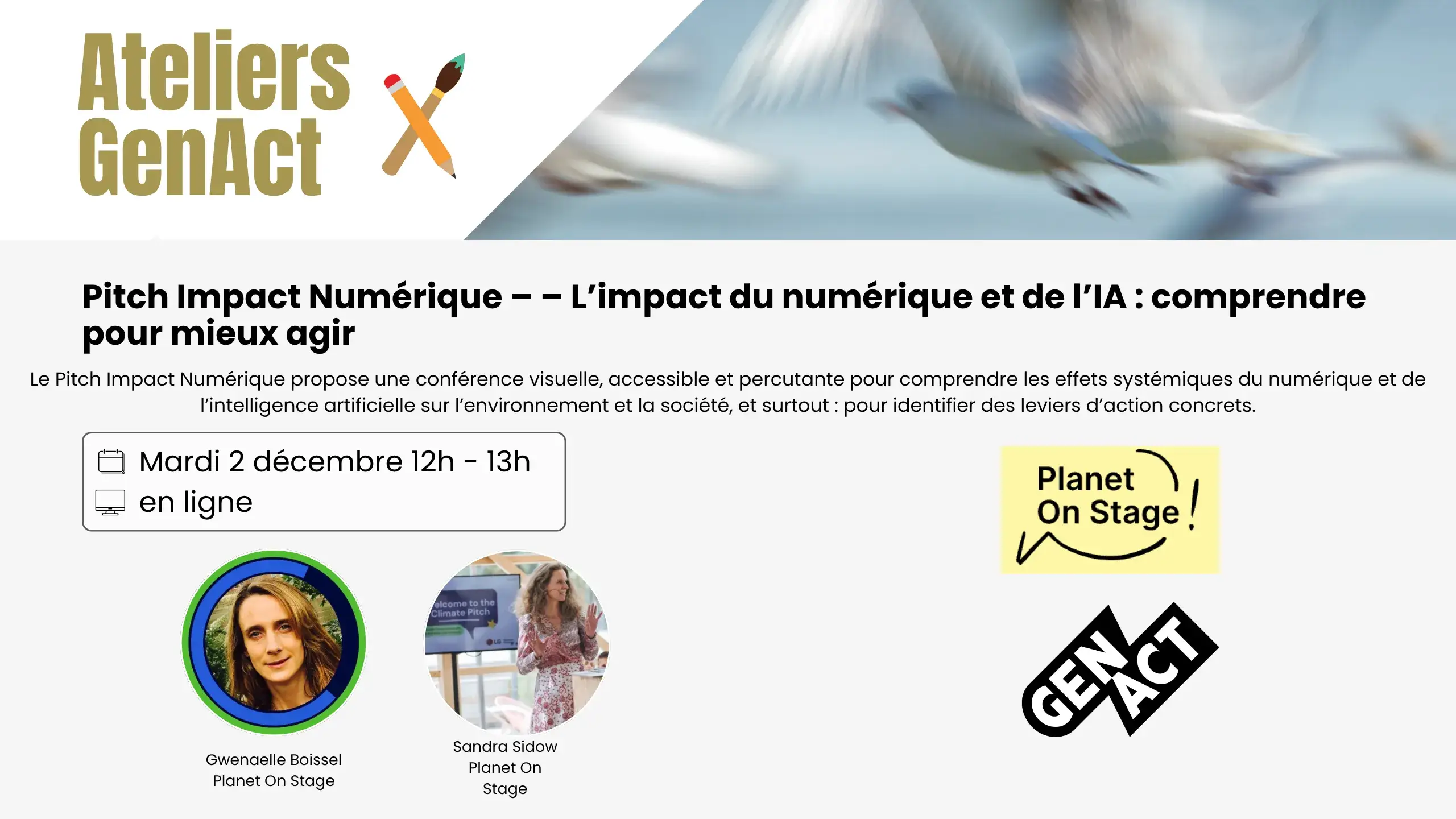 Planet On Stage rend les enjeux environnementaux accessibles à tous grâce à des formats courts, interactifs et engageants, qui utilisent un récit visuel et mémorable pour créer un véritable déclic collectif. Leur mission : permettre à chacun·e de comprendre en moins de 90 minutes les grands défis liés au climat, à la biodiversité, à notre société, et aux enjeux du numérique, tout en inspirant l’action concrète. À travers leurs outils pédagogiques, Planet On Stage propose des sessions interactives qui combinent dessin en direct et narration immersive pour une expérience de sensibilisation unique.